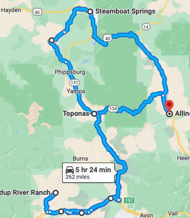 When we leave Kremmling at 9:00 we will go west over Gore Pass to CO 131 then south to take US 6 along the river to Roundup River Ranch and what you have declared the highlight of each Driving for Kids trip, a visit to the kids. This time though, we will join the kids and have a real ranch lunch at Trent’s Cookhouse! Then we retrace our steps on I-70 back to Wolcott then north to Toponas. From there we go north to Oak Creek and two of our old favorite roads, CO 27 and 33 to Steamboat. Then we climb 3,000 feet to Rabbit Ears and Muddy Creek passes for two crossings of the Continental Divide in just a few miles and back to our lodging in Kremmling for the second night stay. No packing and unpacking for us this year!